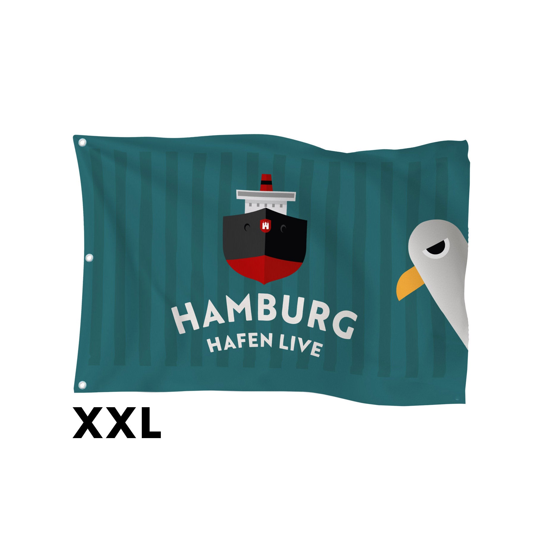Flagge Hamburg Hafen Live XXL 180x120 für Fahnenmast (Petrol)